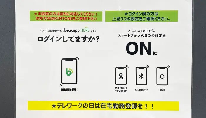 江:ほかにも、アプリの設定方法を書いたPOPを作成して、執務席の卓上に置いていました。このPOPは今も共有スペースに掲示しています。