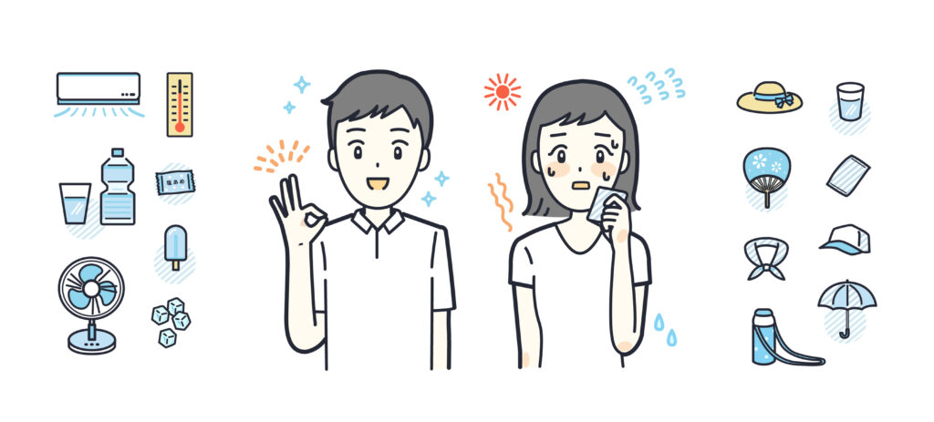 さらに汗を大量にかくことで体内の水分や塩分が失われると、脱水症状が起こりやすくなります。脱水状態になると体温を下げる機能が低下し、熱中症のリスクが高まります。