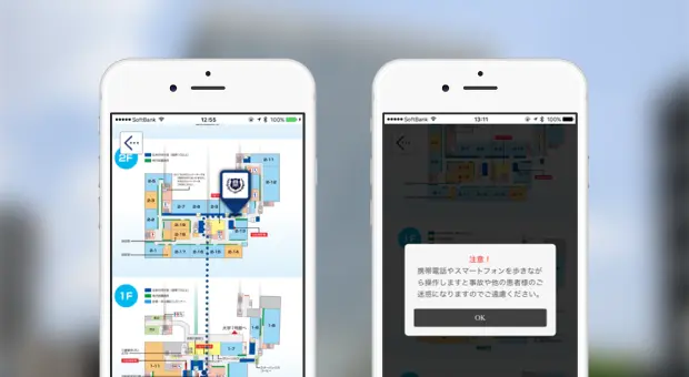 大規模かつ複雑な病院の中で現在位置を表示し、目的地までナビゲーション。